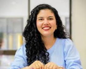 エステファニ・サンチェス議員。みずみずしいお肌はおコメのおかげかな。